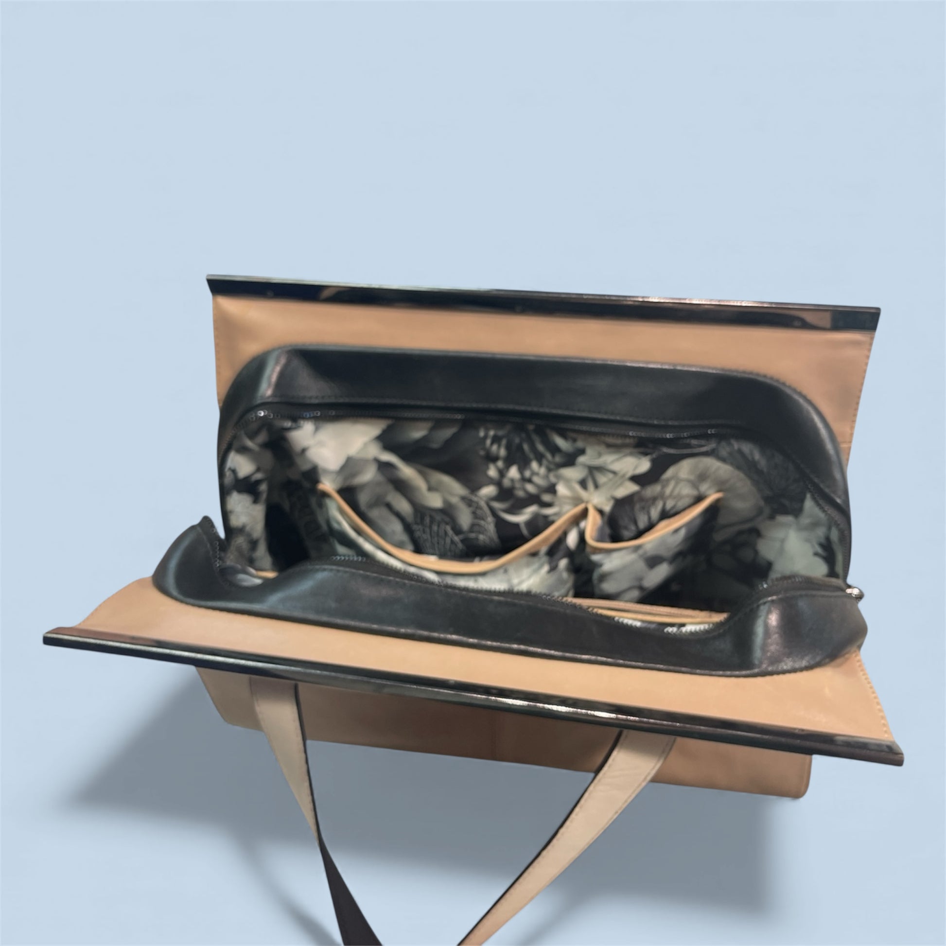 Ted Baker Structured Handbag – Nude & Black | Floral Lining | Elegant Work Tote