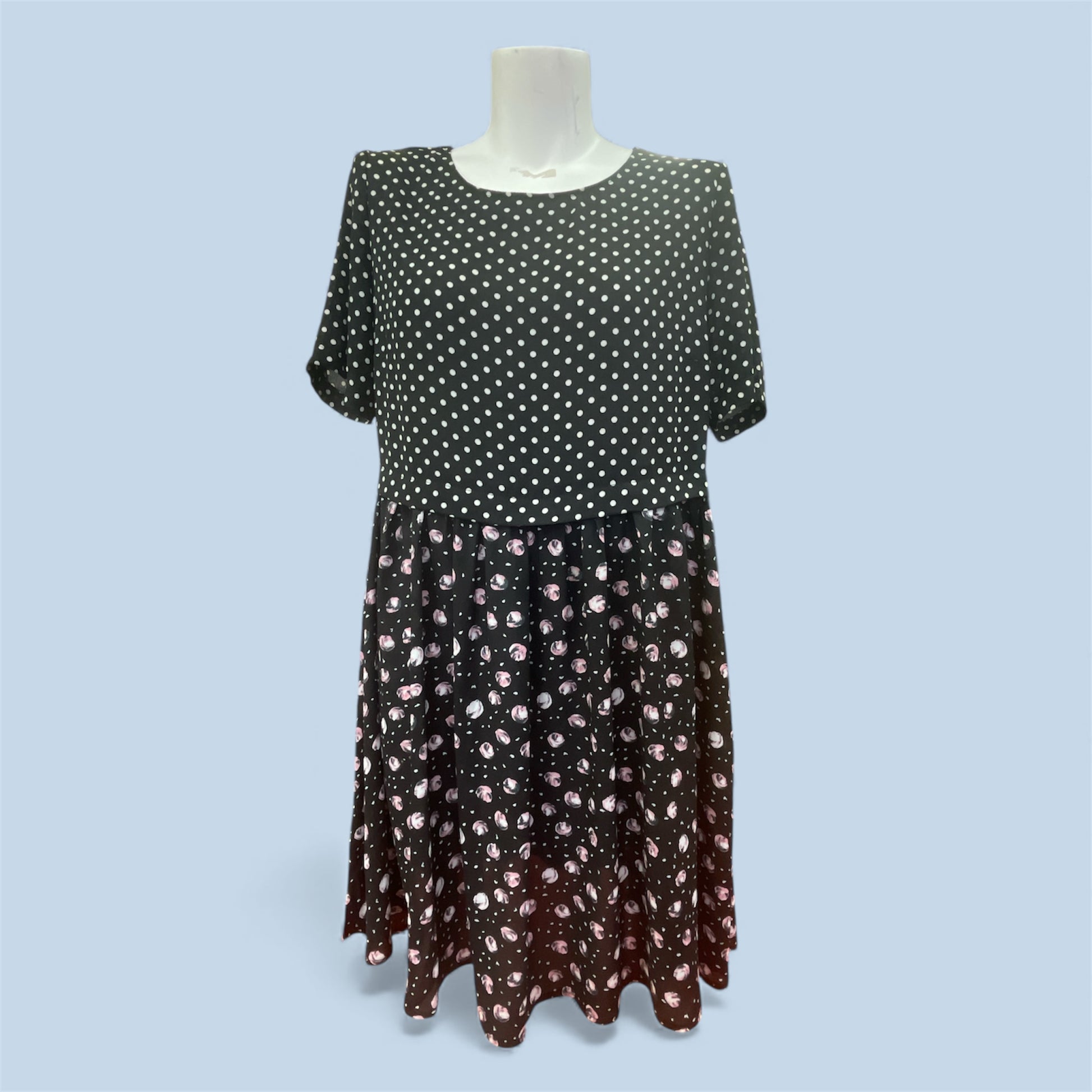 A stylish and easy-to-wear Urban Precinct dress featuring a playful mix of classic polka dots and a contrasting floral skirt. Designed with a relaxed silhouette, this piece is perfect for everyday wear, work, or casual outings.