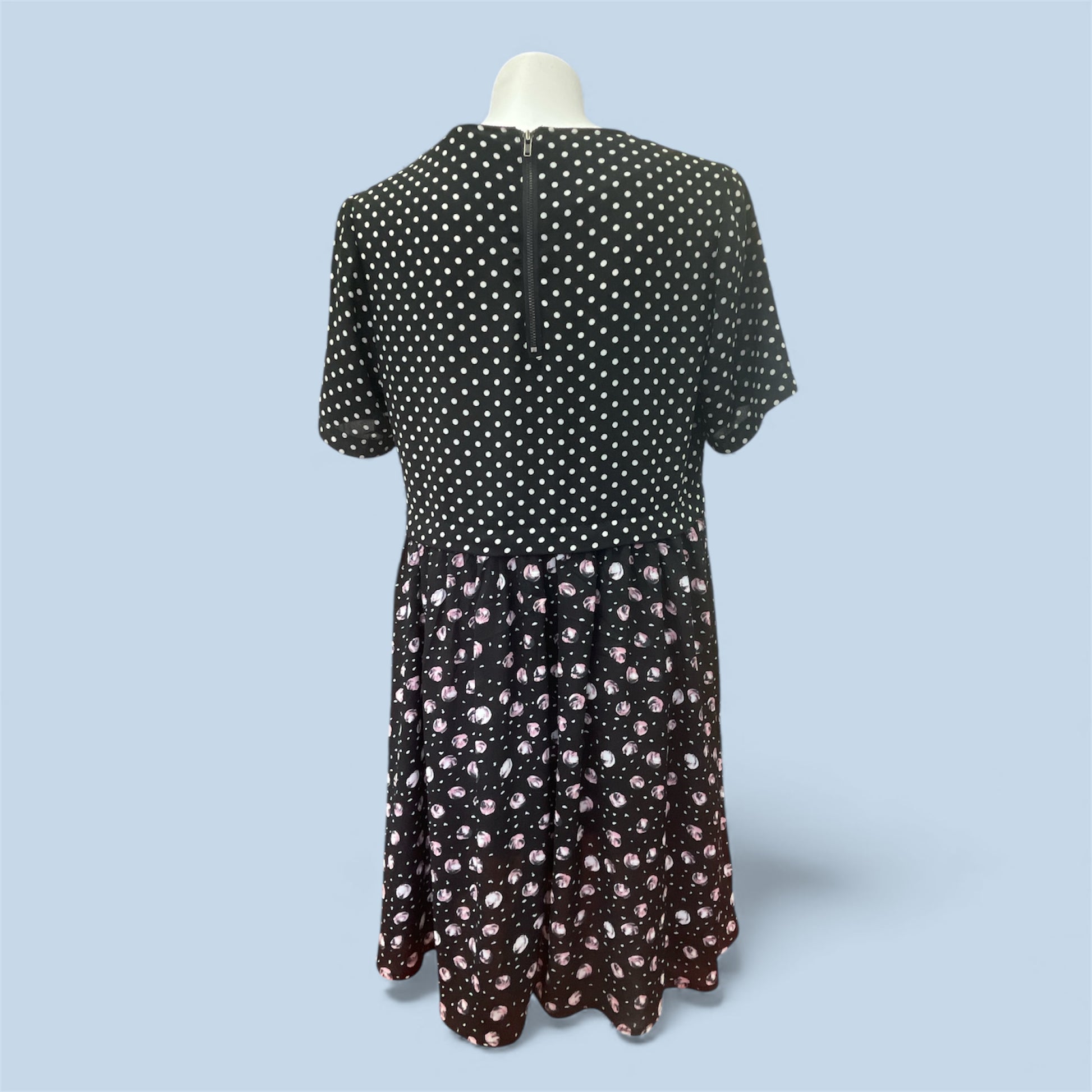 • Black base with white polka dot bodice